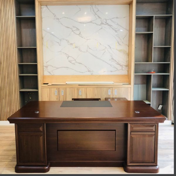 • Mặt bàn thẳng vuông mang nét uy quyền; Có kèm tủ phụ