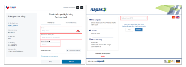 Giao diện thanh toán qua “Thẻ nội địa và tài khoản ngân hàng”